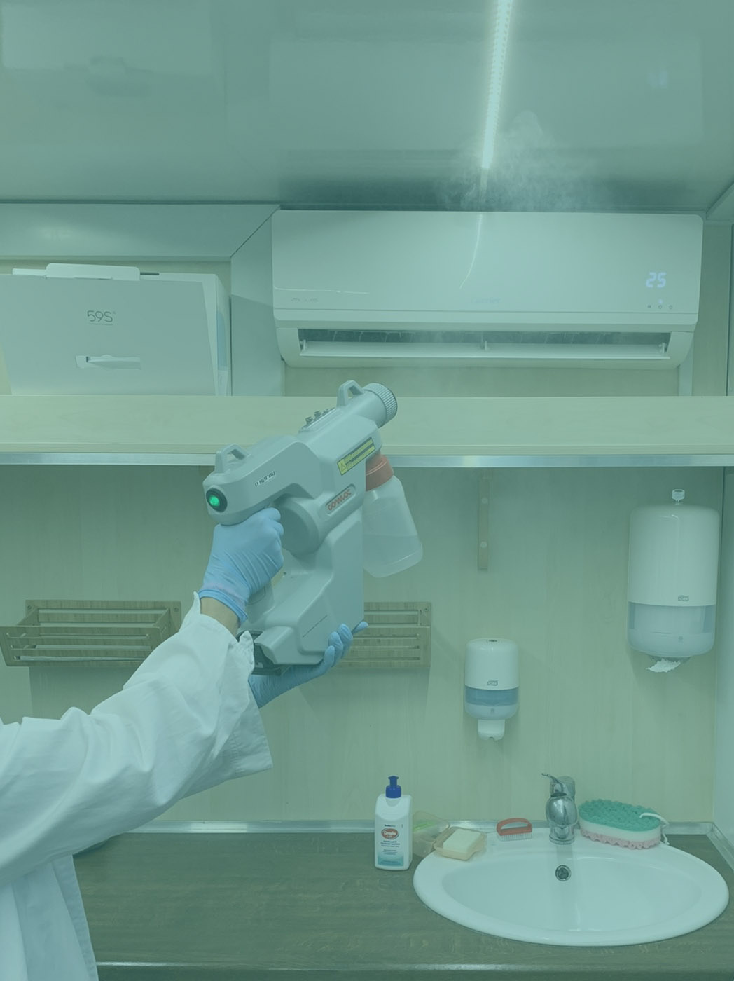 4. Fertőtlenítendő terület előkészítése (ellenőrzés, hogy nem tartózkodik sem ember, sem állat a helyiségben, a tűzjelző, füstjelző kikapcsolt állapotban van-e)