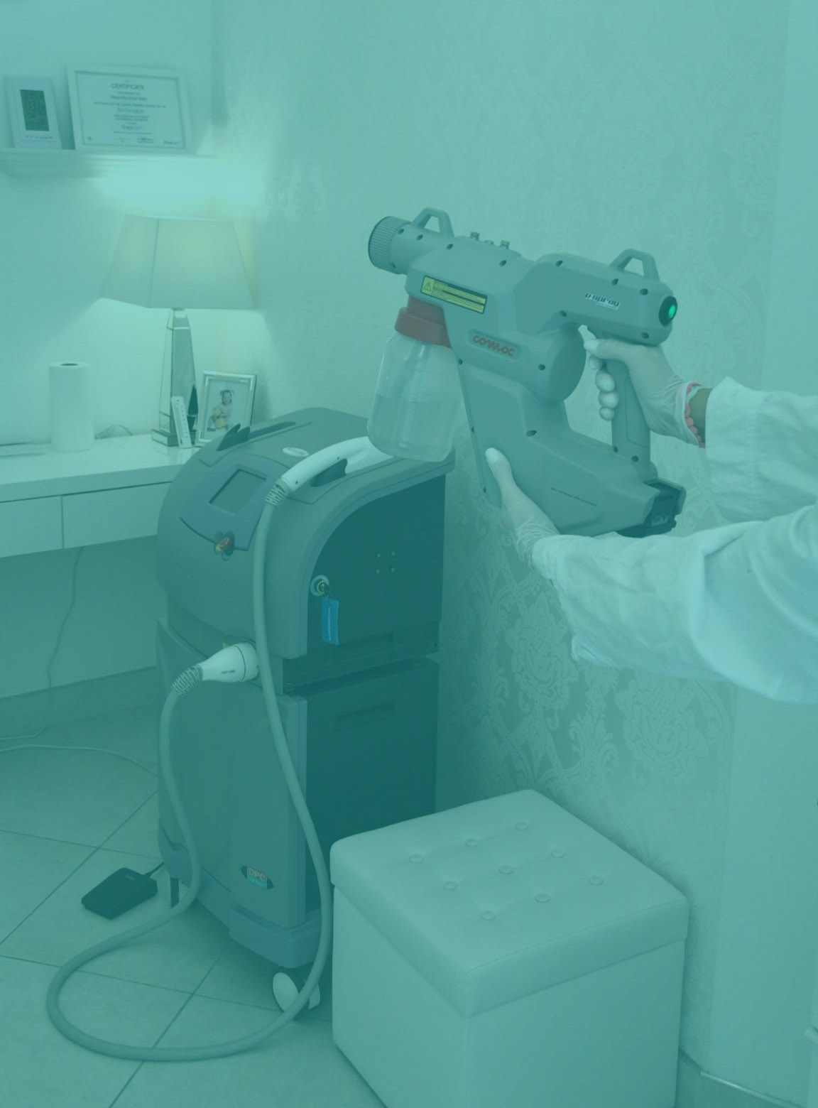 6. A fertőtlenítés elvégzése és a fertőtlenítő szer behatási ideje alatt (+30perc) a helységet zárva kell tartani, majd szellőztetést követően újra használható.